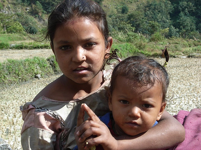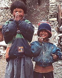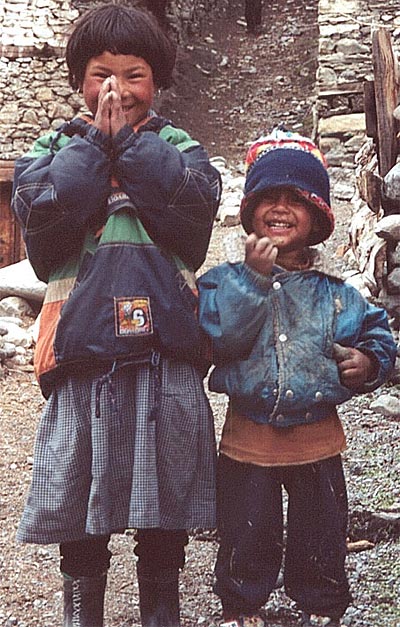 | Local Kids at Braga, south of Manang. | More kids at Manang | Sherpa kids start work early |