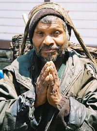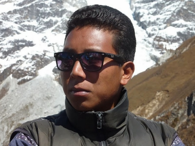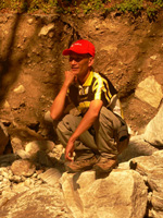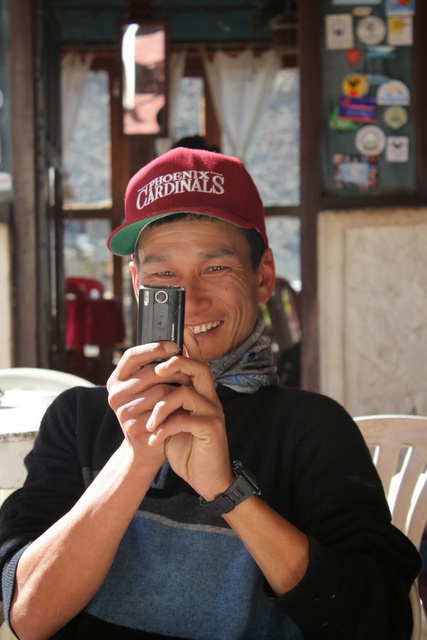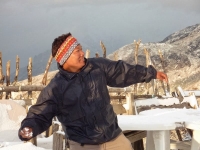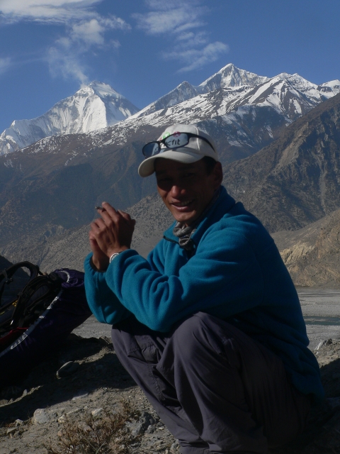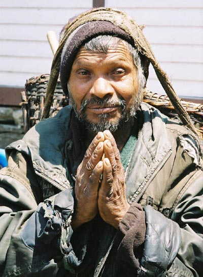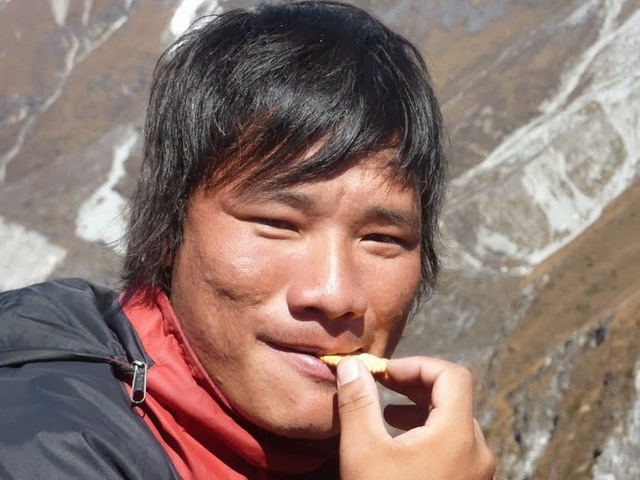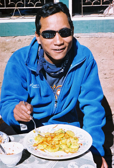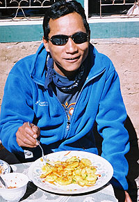 | A porter in the Khumbu | Dorje eating potatoes | |
