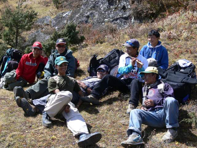 | Basanta, Kancha, Ramesh & Lekh near Namche | Porters near Khumjung | Bir & Niru near Dingboche |